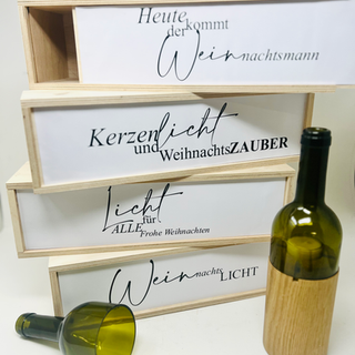 Eine besondere Geschenkidee ist auch unsere Weinbox mit Weinlicht - hergestellt in einer Behindertenwerkstatt von Side by Side.